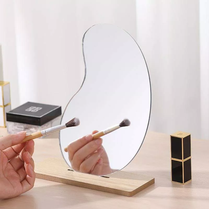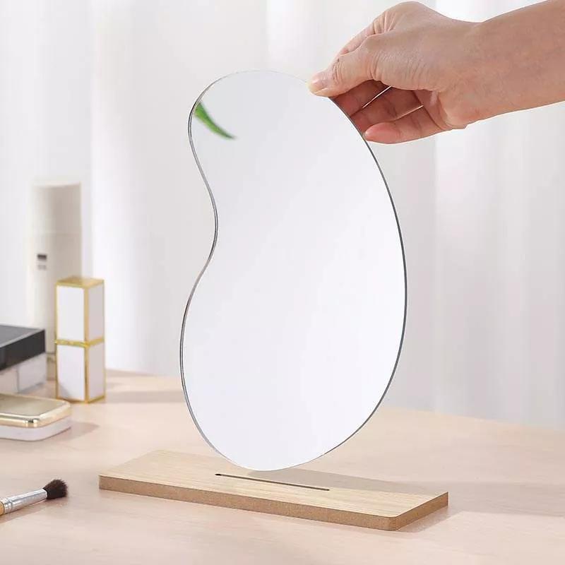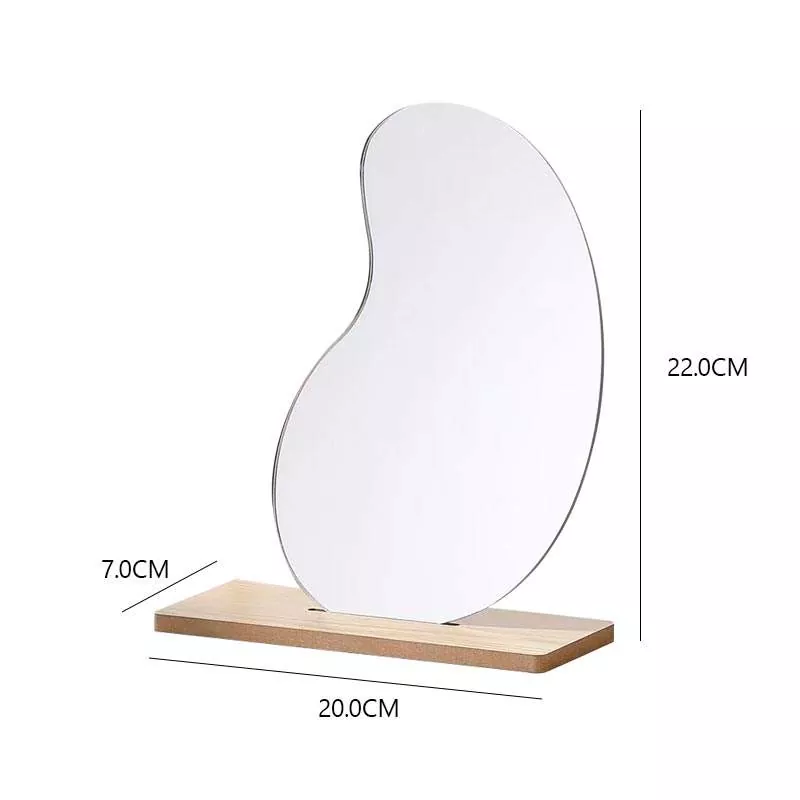 تتميز مرآة الطاولة المتموجة غير المنتظمة هذه بصورة ظلية فنية بسيطة تمتزج بسلاسة مع ديكور المنزل العصري. مصنوع من زجاج شفاف عالي الدقة وقاعدة خشبية ناعمة، ويوفر انعكاسًا خاليًا من التشوه ومثاليًا لوضع المكياج وروتين العناية بالبشرة والعناية اليومية.